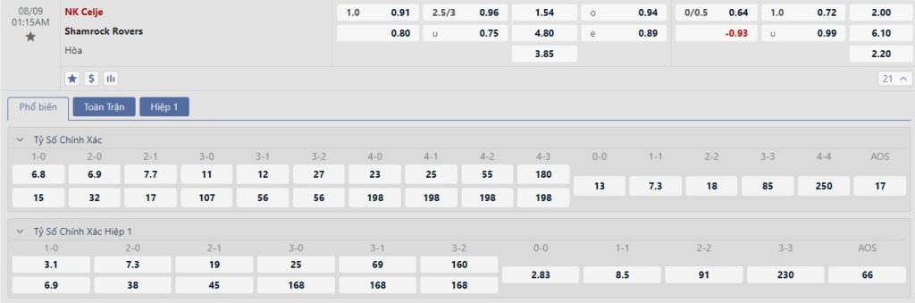 Celje là những người nhận được đánh giá cao hơn trong trận đấu này khi họ chấp tỷ lệ -1 trái. Rõ ràng khi được thi đấu tại tổ ấm của mình thì đội bóng của Slovenia sẽ không muốn tuột mất lợi thế to lớn này. Trước khi bước vào trận đấu này thì Celje đang sở hữu chuỗi 3 trận liên tiếp bất bại với 2 chiến thắng và 1 trận hòa tại sân nhà. Ở chiều ngược lại, Shamrock Rovers lại để thua 4 trận trong 6 trận gần nhất hành quân xa nhà. Vậy nên, Shamrock Rovers sẽ cần phải hết sức tập trung nếu như không muốn phải nhận trận thua.