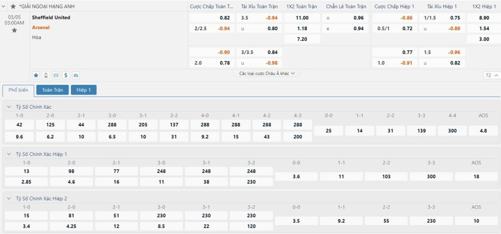 Tỷ lệ kèo ở cuộc đối đầu này là -2 1/4 trái nghiêng về Arsenal và tỷ lệ này là không có gì phải bàn cãi quá nhiều vào thời điểm hiện tại. Chênh lệch đẳng cấp giữa hai đội là hết sức rõ rệt. Dù có lợi thế sân bãi nhưng chứng kiến phong độ kém cỏi của Sheffield United thì thật khó để gửi gắm niềm tin. Sheffield United đã để thua 5/6 trận gần nhất. Trận đấu gần nhất chơi trên sân nhà, Sheffield United đã hứng chịu thất bại nặng nề 0-5 dưới tay Brighton. Ở 5 lần gần nhất đối đầu nhau thì Arsenal đã chơi áp đảo khi mang về cho mình 4 thắng lợi, còn lại là 1 trận hòa. Các nhà đầu tư nên tin tưởng vào đội khách ở trận này để mang về cơ hội thắng kèo cao hơn.