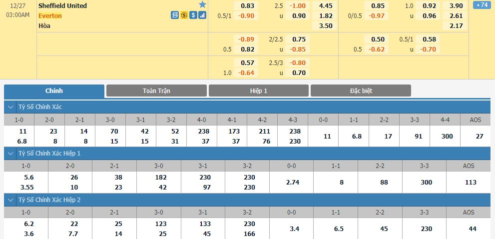 Soi kèo tài xỉu, kèo tỷ số Sheffield United vs Everton