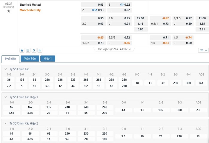 Soi kèo tổng quát Sheffield United vs Manchester City
