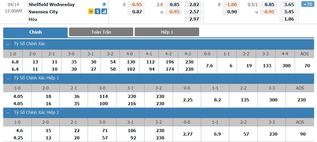 Soi kèo châu Á Sheffield Wednesday vs Swansea