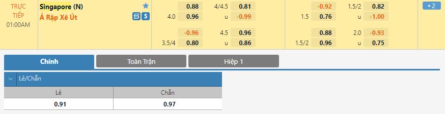 Soi kèo châu Á Singapore vs Ả Rập Xê Út