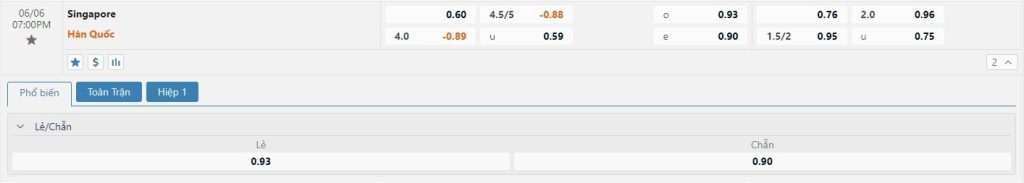 Soi kèo châu Âu Singapore vs Hàn Quốc