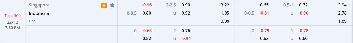Dự đoán kèo tỷ số hiệp 1: Singapore 0-2 Indonesia