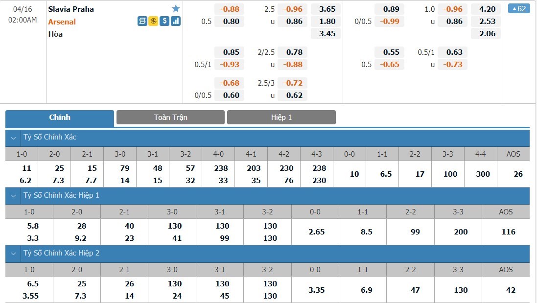 Arsenal vẫn được đánh giá là cửa trên ở trận này với tỷ lệ cược 1 ăn 1.80. Slavia Praha có tỷ lệ cược là 1 ăn 3.65 trong khi đó tỷ số hòa có tỷ lệ cược là 1 ăn 3.45. Slavia Praha đang có phong độ rất cao trong khi đó Arsenal vẫn đang tỏ ra rất thiếu ổn định. Có lợi thế sân nhà, Slavia Praha hoàn toàn có thể sẽ tiếp tục tạo ra được những khó khăn cho Arsenal. Ô cược hòa sẽ là lựa chọn được đánh giá cao ở kèo đấu này.