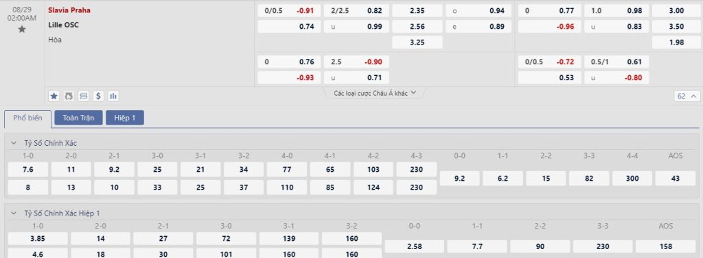 Soi kèo Slavia Praha vs Lille, 02h00, 29/08/2024