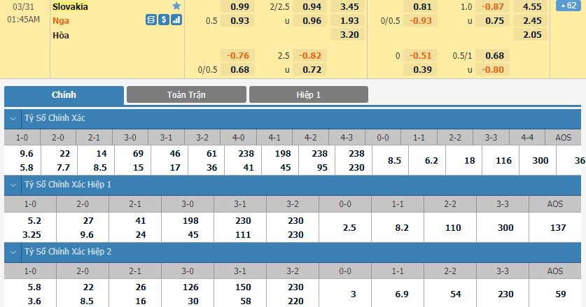 Soi kèo tài xỉu, kèo tỷ số Slovakia vs Nga