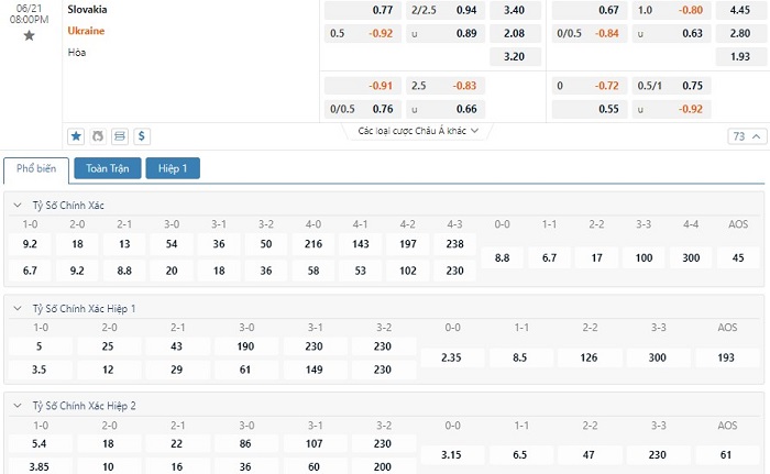Soi kèo tổng quát Slovakia vs Ukraine