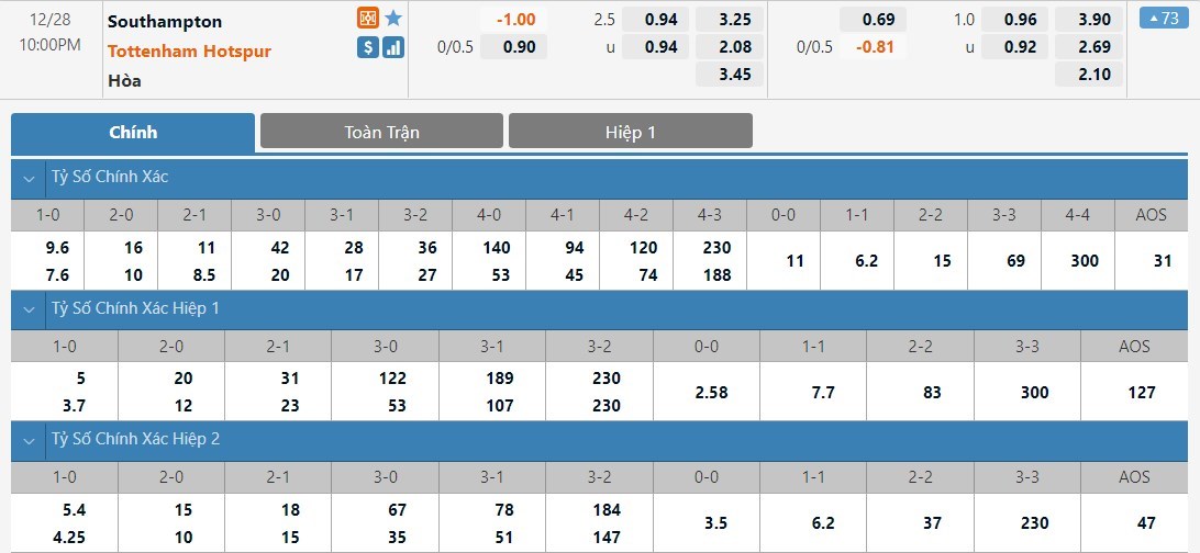 Tottenham dưới thời tân HLV Antonio Conte đang càng chơi càng hay. Giữa tuần qua, họ có chiến thắng ấn tượng trước West Ham tại Carabao Cup và đó cũng là trận thắng thứ 3 của Tottenham trong 4 trận gần nhất. Cửa cược Tottenham cũng thắng kèo ở cả 4 trận đấu nói trên và họ đang là một lựa chọn rất đáng tin cậy. Southampton thi đấu không mấy ấn tượng ở mùa giải này và họ vẫn đang không được đánh giá quá cao. Ở cả 6 trận gần nhất, Southampton đều chỉ toàn hòa và thua và họ vẫn đang tỏ ra rất thiếu hiệu quả. Ở cả 3 lần gần nhất, Tottenham gặp Southampton, họ cũng đều giành chiến thắng và thầy trò Conte có quyền tự tin ở trận này. Với tỷ lệ chấp nhẹ 1/4 trái, cửa trên Tottenham sẽ là lựa chọn có thể tin tưởng.
