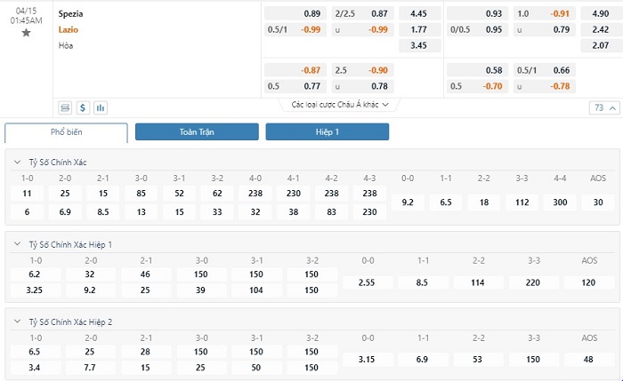 Soi kèo châu Á Spezia vs Lazio