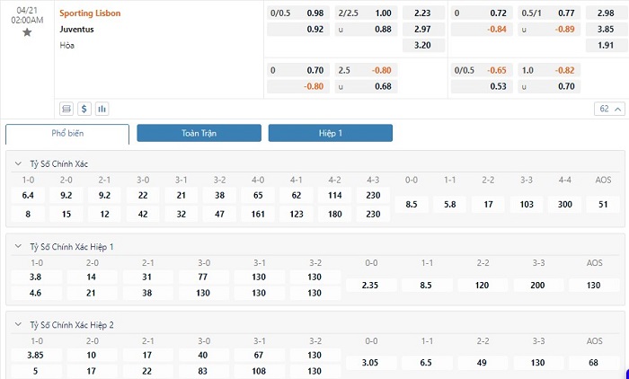 Soi kèo tài xỉu, kèo tỷ số Sporting CP vs Juventus