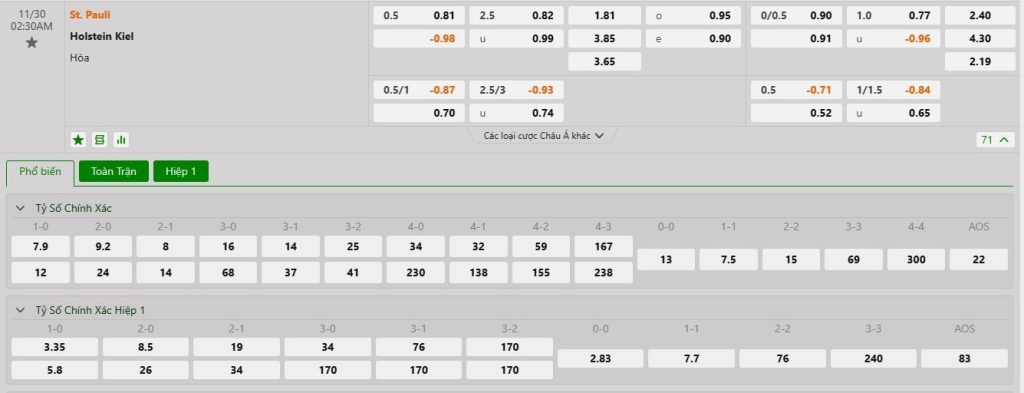 Soi kèo châu Á St. Pauli vs Holstein Kiel