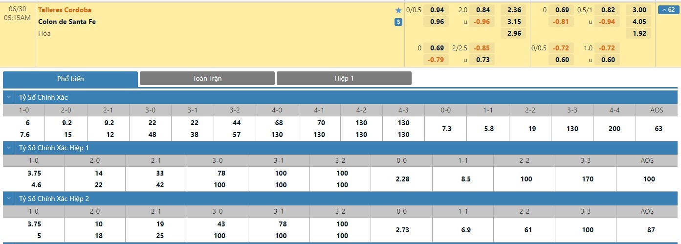 Nếu như Talleres không sở hữu cho mình bất cứ trận đấu nào mang về dù chỉ là 1 bàn thắng ở 5 trận đấu gần nhất ở giải quốc nội thì Colon cũng sở hữu thành tích tương tự. Do đó, với kèo hiệp 1 thì người chơi chỉ nên tin tưởng vào kết quả hòa không bàn thắng.Mặc dù đang trải qua chuỗi phong độ bết bát nhưng thực tế thì hàng thủ của chủ nhà vẫn đang thi đấu tốt khi họ chỉ để thủng lưới 3 bàn ở 5 trận ra quân gần nhất. Vì vậy khả năng Colon Santa FE để thua trắng ở trận tới là hoàn toàn có thể xảy ra.