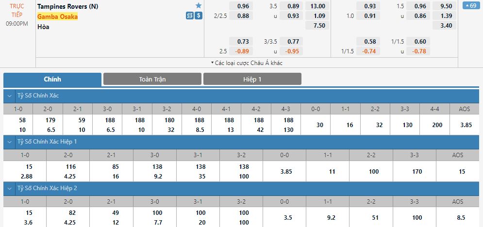 Dự đoán kèo tỷ số hiệp 1: Tampines Rovers 1-1 Gamba Osaka