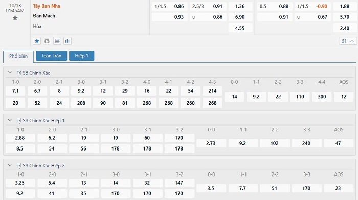 Soi kèo tổng quát Tây Ban Nha vs Đan Mạch