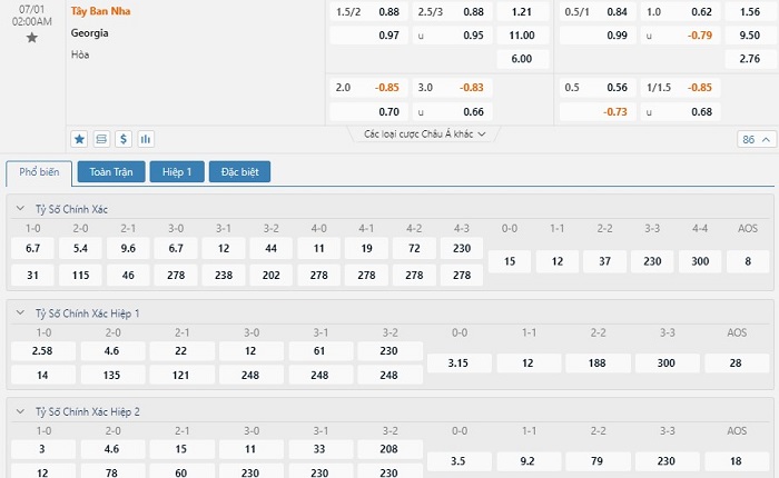 Soi kèo tài xỉu, kèo tỷ số Tây Ban Nha vs Georgia