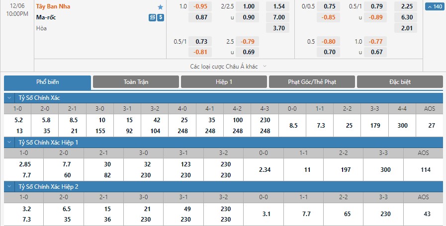 Soi kèo tài xỉu, kèo tỷ số Tây Ban Nha vs Morocco