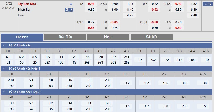Soi kèo tổng quát Tây Ban Nha vs Nhật Bản