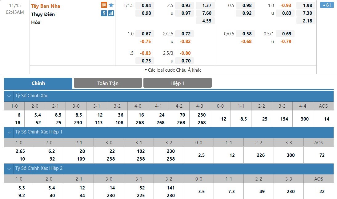 Soi kèo châu Á Tây Ban Nha vs Thụy Điển