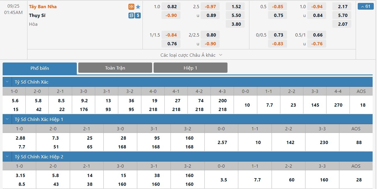 Soi kèo châu Á Tây Ban Nha vs Thụy Sĩ