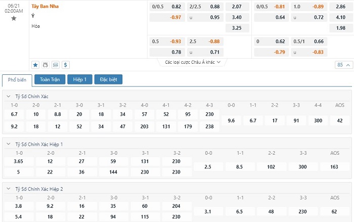 Soi kèo châu Á Tây Ban Nha vs Ý