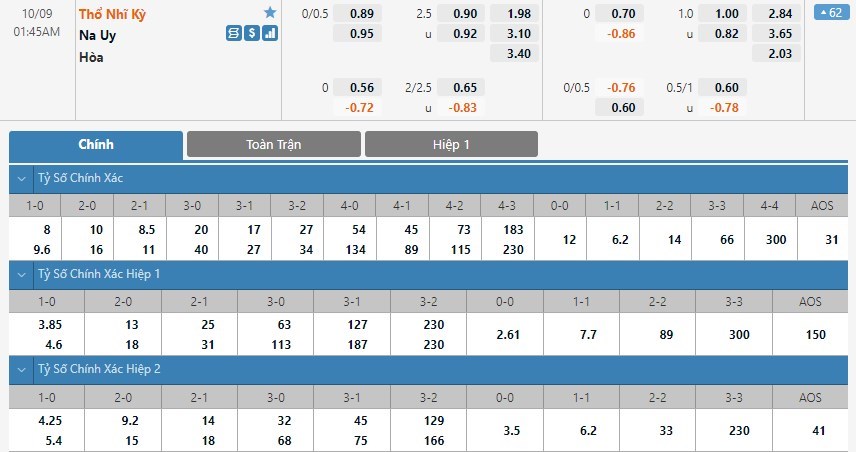 Dự đoán kèo tỷ số hiệp 1: Thổ Nhĩ Kỳ 0-2 Na Uy