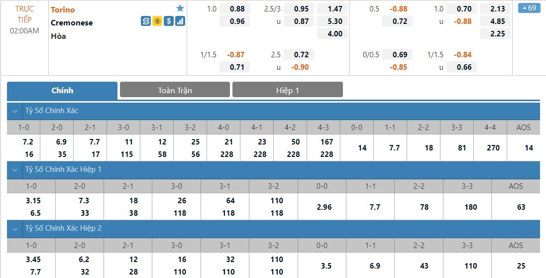 Sau 2 mùa giải cực kì sa sút, Torino vẫn cho thấy những dấu hiệu thi đấu rất nghèo nàn ở mùa giải năm nay. Ở đầu mùa giải năm nay, Torino đã có 3 trận giao hữu và ở cả 3 trận đấu nói trên, Torino đều không thắng. Thậm chí ở liên tiếp 2 trận gần đây, Torino đều phải nhận thất bại. Tính rộng hơn Torino thậm chí đang có chuỗi 8 trận không thắng liên tiếp và họ đang có phong độ rất tệ. Trong khi đó Cremonese lại đang có phong độ rất cao khi họ là cửa cược thắng kèo ở 5/6 trận gần nhất. Trước những đối thủ trên cơ, Cremonese đang thường xuyên tạo ra được những khó khăn và được chấp rất sâu, cửa dưới Cremonese sẽ là lựa chọn hợp lý cho kèo đấu này.