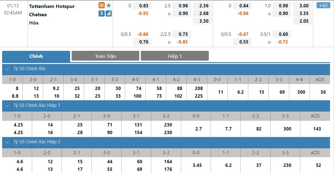 Soi kèo châu Á Tottenham Hotspur vs Chelsea