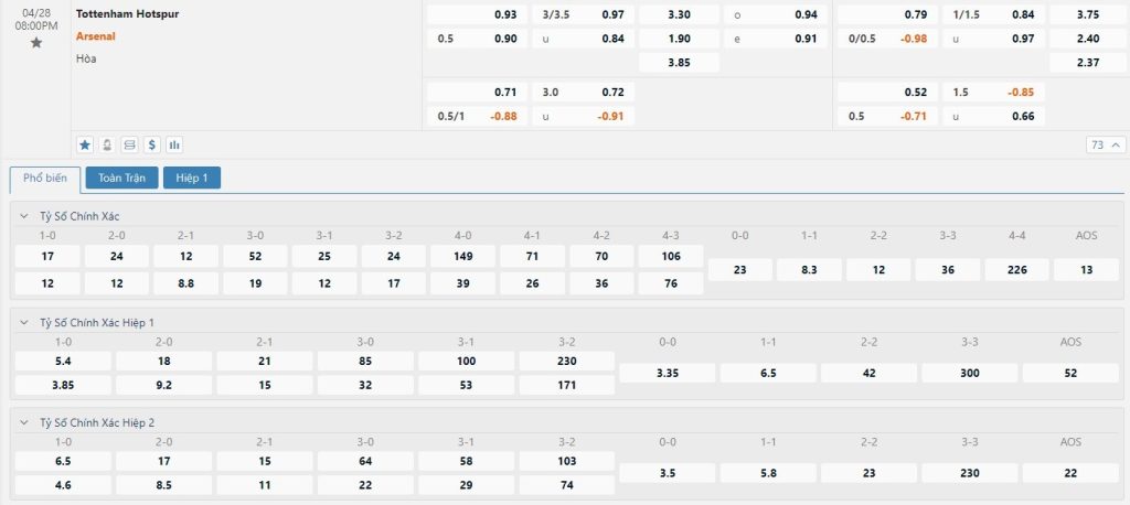 Soi kèo tài xỉu, kèo tỷ số Tottenham vs Arsenal