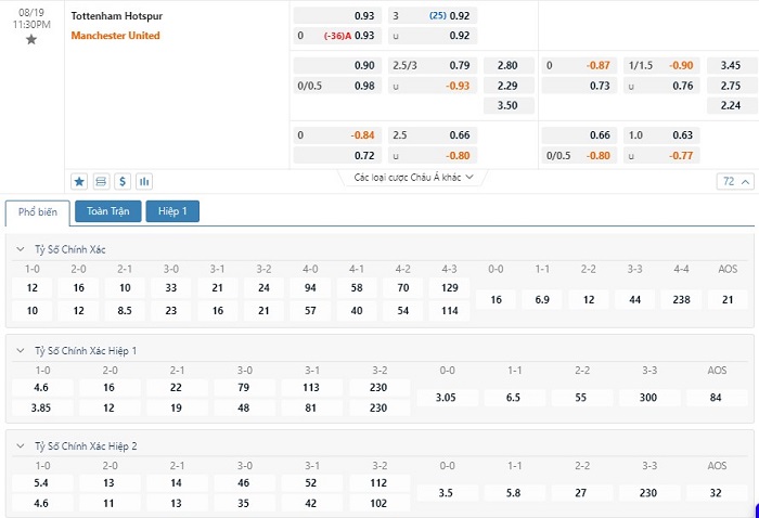 Soi kèo tài xỉu, kèo tỷ số Tottenham vs Manchester United
