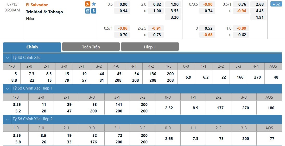 Dự đoán kèo tỷ số hiệp 1: Trinidad & Tobago 1-0 El Salvador