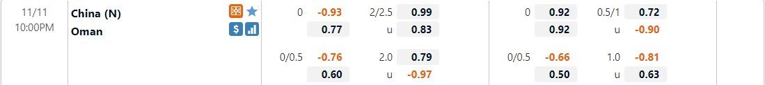 Dự đoán kèo tỷ số hiệp 1: Trung Quốc 1-1 Oman