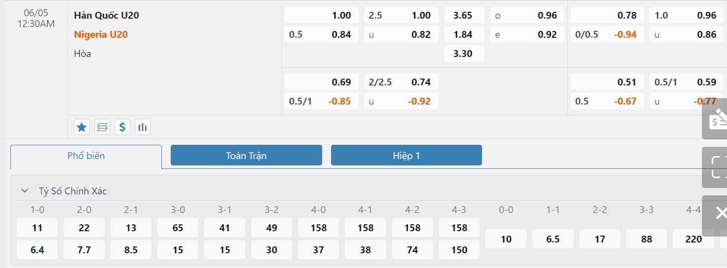 Dự đoán kèo tỷ số hiệp 1: U20 Hàn Quốc 0-0 U20 Nigeria