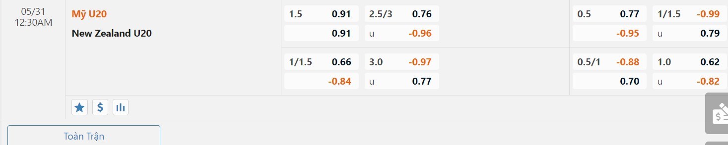 Dự đoán kèo tỷ số hiệp 1: U20 Mỹ 1-0 U20 New Zealand