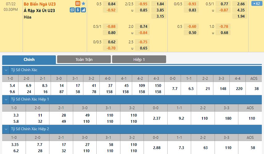 Dự đoán kèo tỷ số hiệp 1: U23 Bờ Biển Ngà 0-0 U23 Saudi Arabia