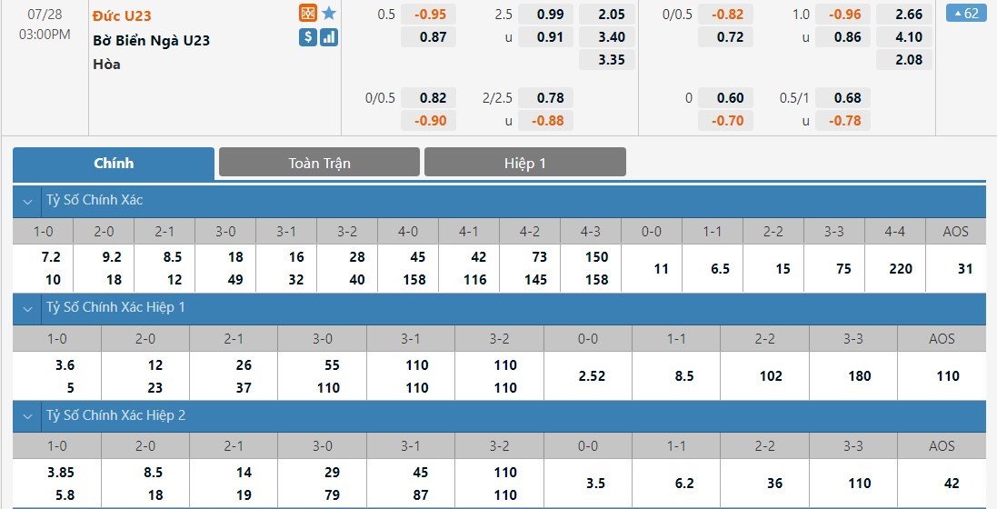 Dự đoán kèo tỷ số hiệp 1: U23 Đức 0-2 U23 Bờ Biển Ngà