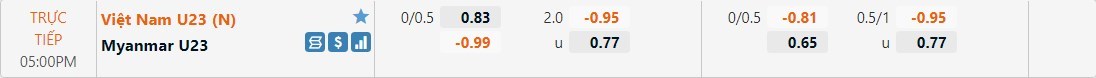 Dự đoán kèo tỷ số hiệp 1: U23 Việt Nam 0-1 U23 Myanmar