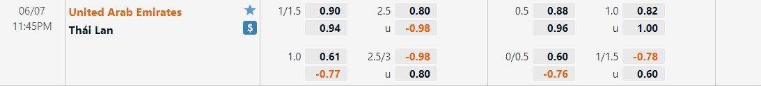 Trong 3 trận đấu gần nhất của mình, UAE ghi được tới 15 bàn thắng. Đây là lúc mà hàng công của đội chủ nhà dang thi đấu thăng hoa và họ đang tỏ ra rất hiệu quả. Phía bên kia chiến tuyến, Thái Lan đang thi đấu thiếu chặt chẽ và trận gặp Indonesia vừa qua của họ kết thúc với 4 bàn thắng được ghi. Với phong độ hiện tại của 2 đội, ô cược tài là lựa chọn có thể tin tưởng ở kèo đấu này.