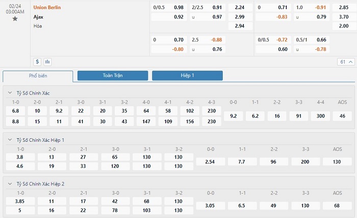 Dự đoán kèo tỷ số hiệp 1: Union Berlin 0-0 Ajax