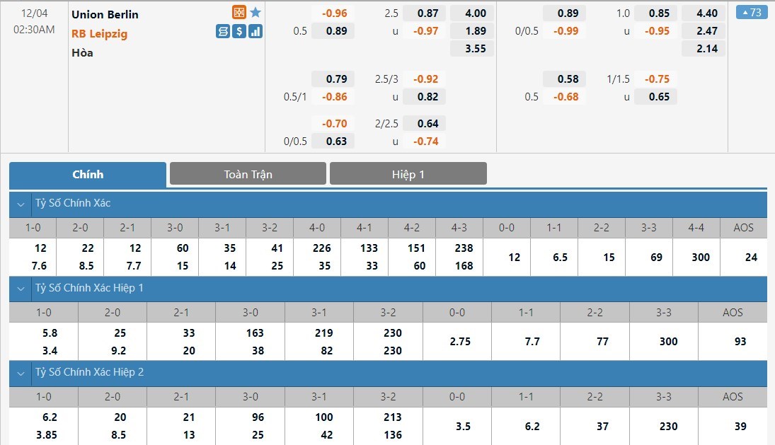 Dự đoán kèo tỷ số hiệp 1: Union Berlin 1-1 RB Leipzig