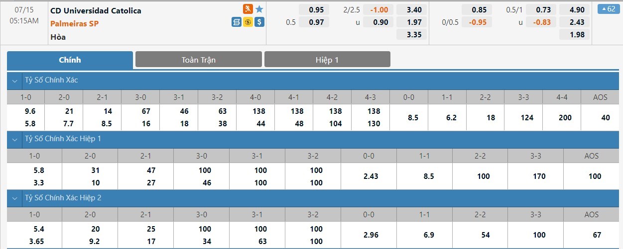 Soi kèo châu Á Universidad Catolica vs Palmeiras