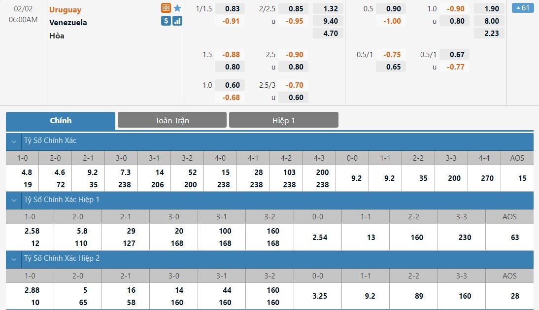 Soi kèo tài xỉu, kèo tỷ số Uruguay vs Venezuela