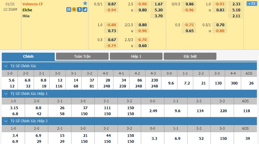 Đội chủ nhà Valencia đã chẳng hề có nổi lấy 1 chiến thắng trong 3 trận gần nhất. Họ để thua 2 trận và hòa 1 trận. Tương tự, đội khách cũng đã không hề biết đến mùi thắng cuộc trong 4 trận gần nhất. Trong đó, tân binh Elche thậm chí đã phải nhận lấy tới 3 thất bại và chỉ có được 1 kết quả hòa. Tuy vậy, sự vượt trội về mặt đẳng cấp kèm theo ưu thế sân nhà cũng sẽ phần nào đem lại lợi thế không hề nhỏ cho Valencia trong kèo đấu này. Chính vì lẽ đó, đội chủ nhà vẫn sẽ được đánh giá cao hơn trên kèo Châu Á và sẽ phải chấp bàn trong cả 2 hiệp thi đấu.