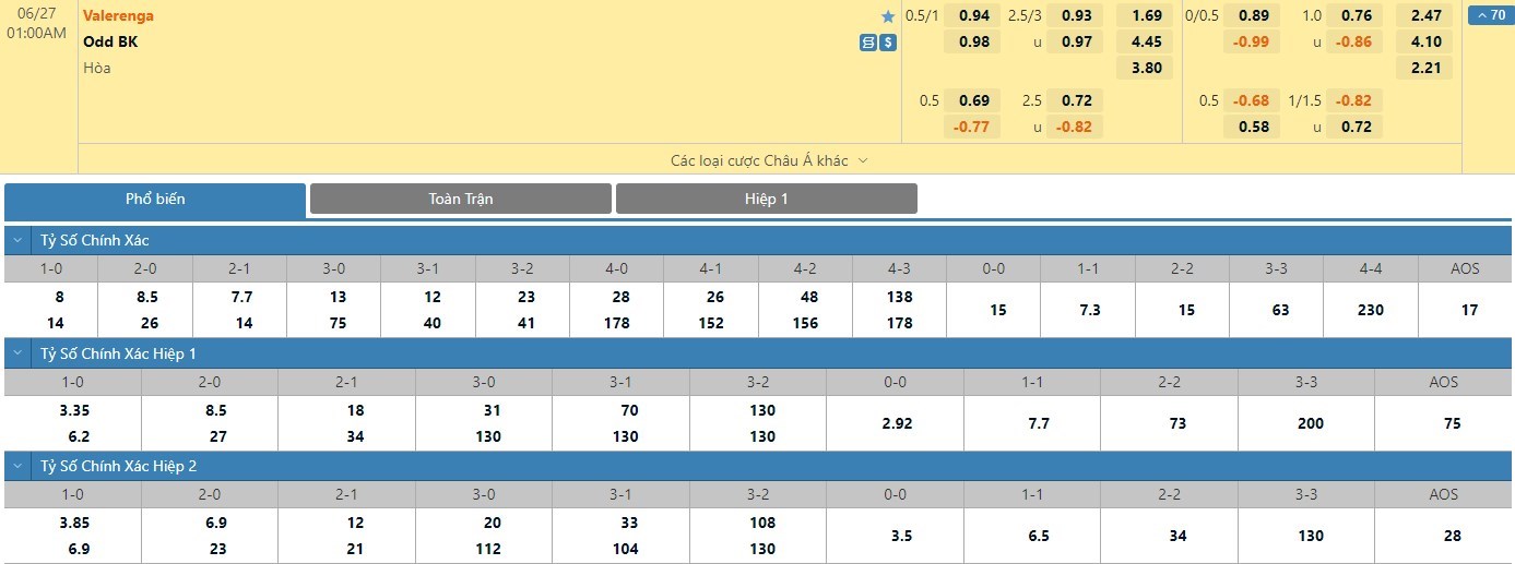Soi kèo Valerenga vs Odds Ballklubb , 01h00, 27/06/2022