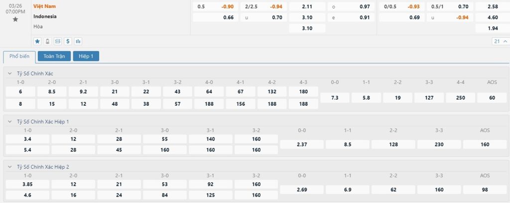 Soi kèo tài xỉu, kèo tỷ số Việt Nam vs Indonesia