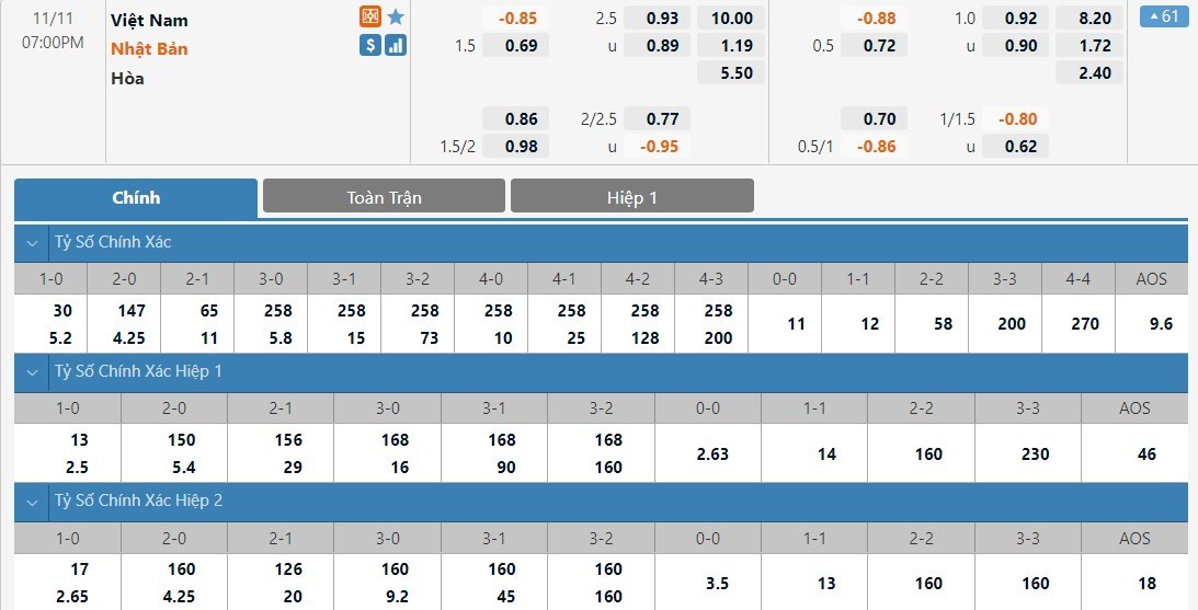 Soi kèo tài xỉu, kèo tỷ số Việt Nam vs Nhật Bản