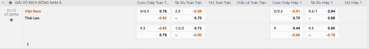 Dự đoán kèo tỷ số hiệp 1: Việt Nam 0-0 Thái Lan