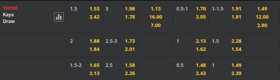 Viettel vẫn sẽ được đánh giá cao hơn Kaya khá nhiều ở kèo đấu này và tỷ lệ cược của 2 đội sẽ có sự chênh lệch lớn. Kaya đang tỏ ra quá yếu đuối tại sân chơi AFC Champions League. So với đối thủ này, Viettel đang nhỉnh hơn không ít về trình độ và đại diện Việt Nam sẽ có chiến thắng ở trận này.