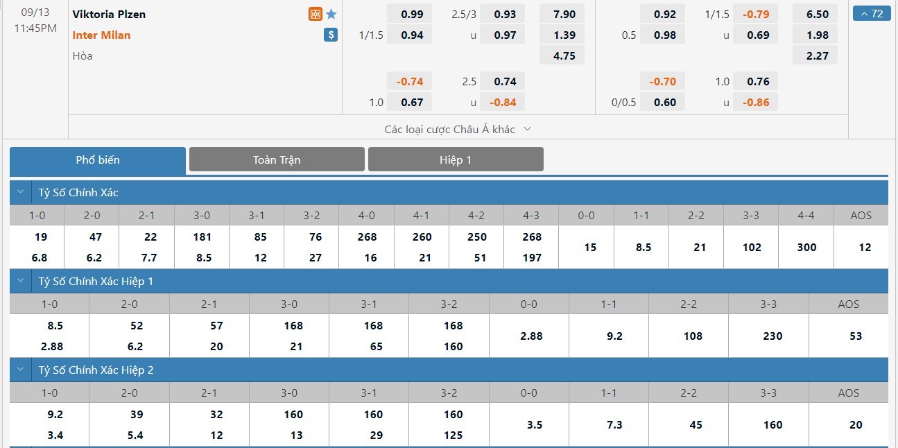 Viktoria Plzen đang tỏ ra rất non nớt và trước những đối thủ trên cơ, họ đang để lộ ra rất nhiều sơ hở. Ở lượt đấu trước, họ đã để cho Barcelona chọc thủng lưới tới 5 lần. Inter Milan là đội có khả năng tấn công không tệ và đây là trận đấu mà họ sẽ tận dụng được cơ hội để ghi nhiều bàn. Ô cược tài sẽ là lựa chọn cho kèo đấu này.