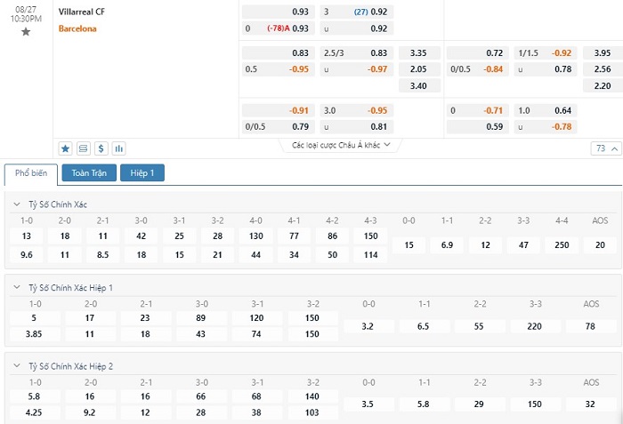 Soi kèo tài xỉu, kèo tỷ số Villarreal vs Barcelona